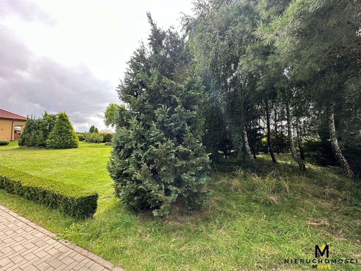 Posesja całkowicie ogrodzona z ciekawym starodrzewiem od strony ulicy dojazdowej.