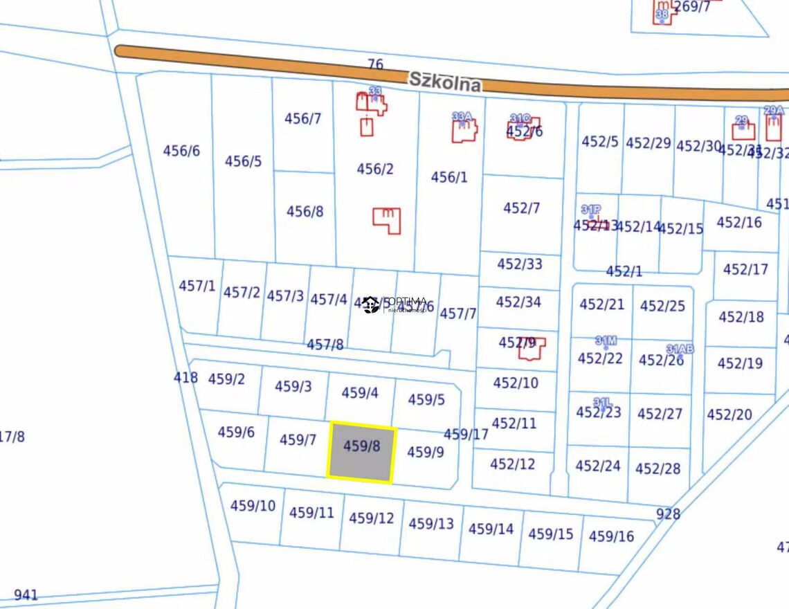 działka nr 459/8 o powierzchni 1087m2 w cenie 115 000zł REZERWACJA