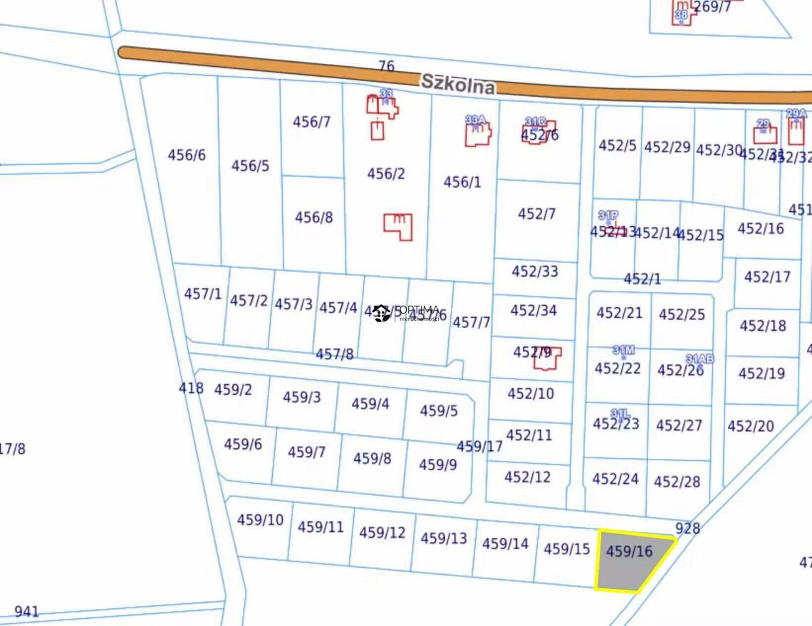działka nr 459/16 o powierzchni 1033m2 w cenie 112 000zł