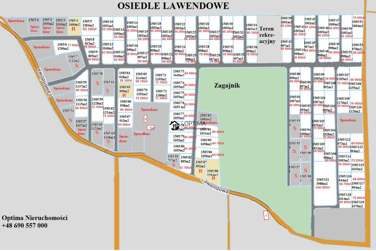Niewątpliwą zaletą osiedla jest teren rekreacyjny składający się z 4 działek o łącznej powierzchni: 3998m2 przeznaczonych na plac zabaw, siłownię i boiska. Udział w terenie rekreacyjnym oraz w drodze wewnętrznej jest zawarty w cenie zakupu działki.